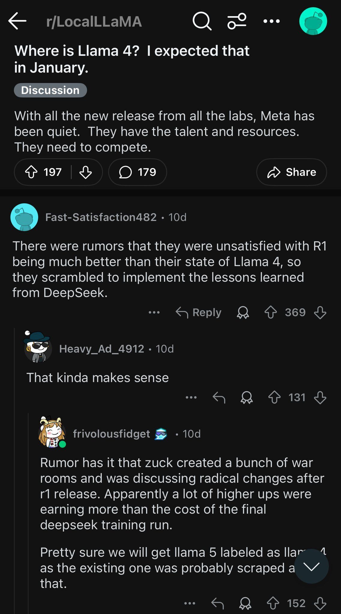 Llama 4 was set to be released in January but R1 made them to rethink/ rework their model.